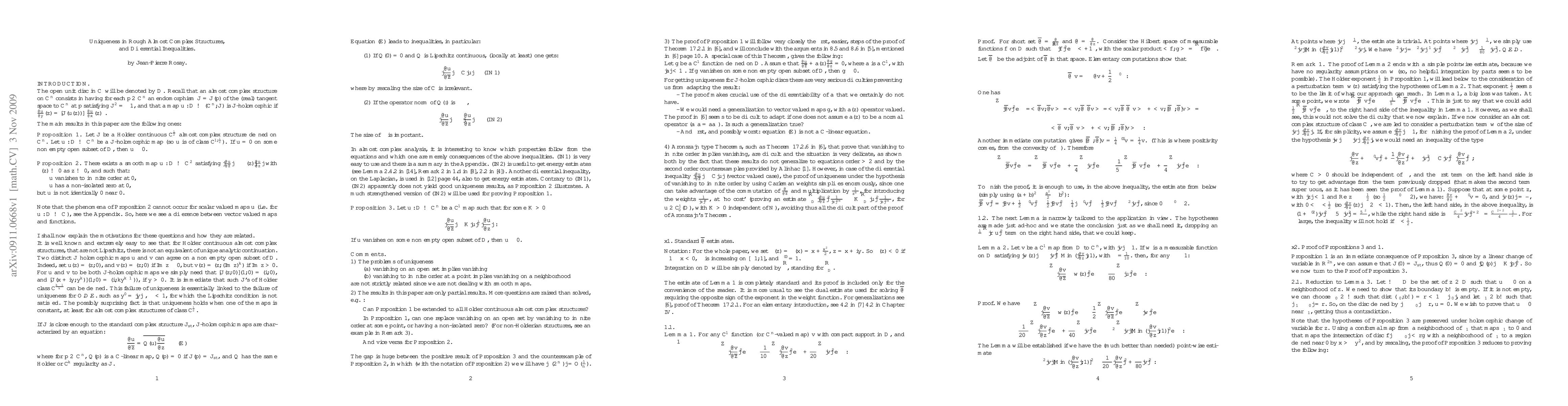 The paper proves that almost complex structures of H"older class at least 1/2 imply uniqueness of J-holomorphic discs, contradicting previous non-uniqueness results. It also investigates implications for differential inequalities in the theory of almost complex manifolds.
