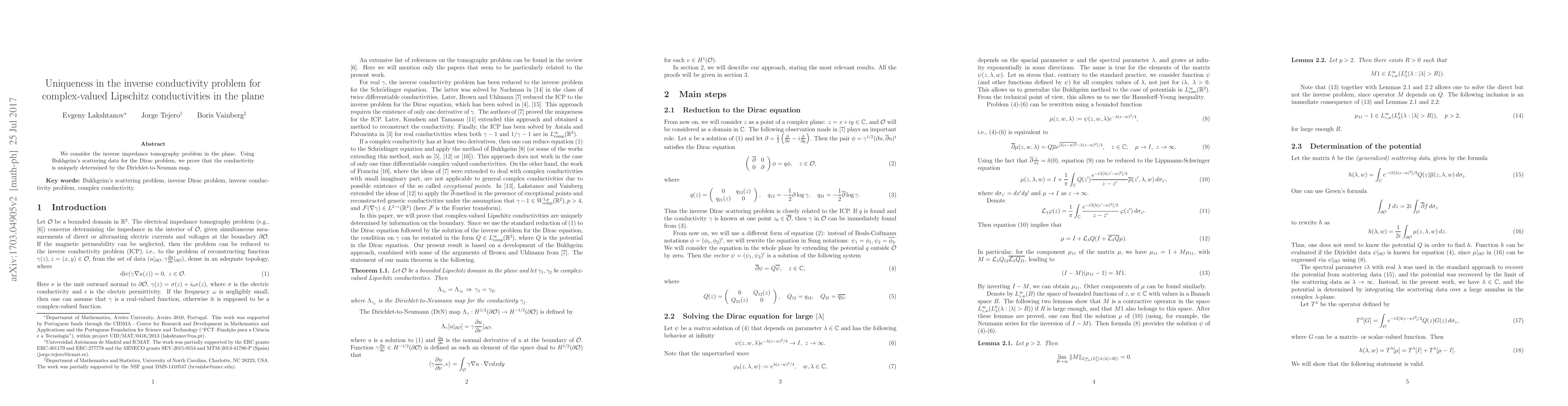 Researchers prove that complex-valued conductivity in a plane can be uniquely determined using the Dirichlet-to-Neuman map, resolving the impedance tomography problem.