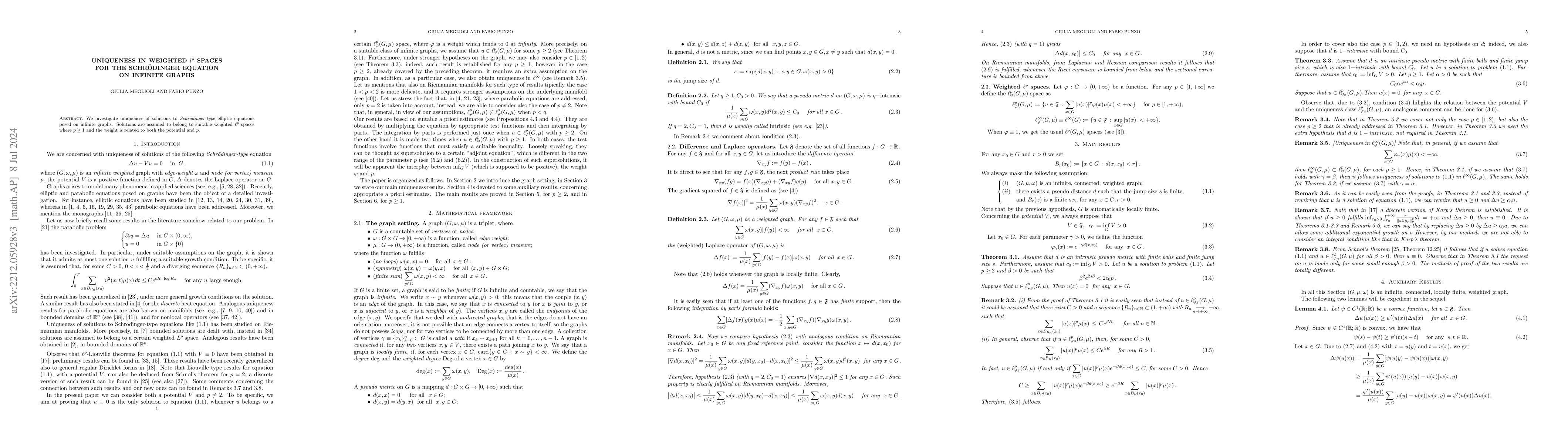 Summary: This paper examines the uniqueness of solutions to Schrödinger-type elliptic equations on infinite graphs, focusing on solutions within weighted $\ell^p$ spaces where the weight depends on both the potential and the $p$ value. Uniqueness criteria are established for these solutions.