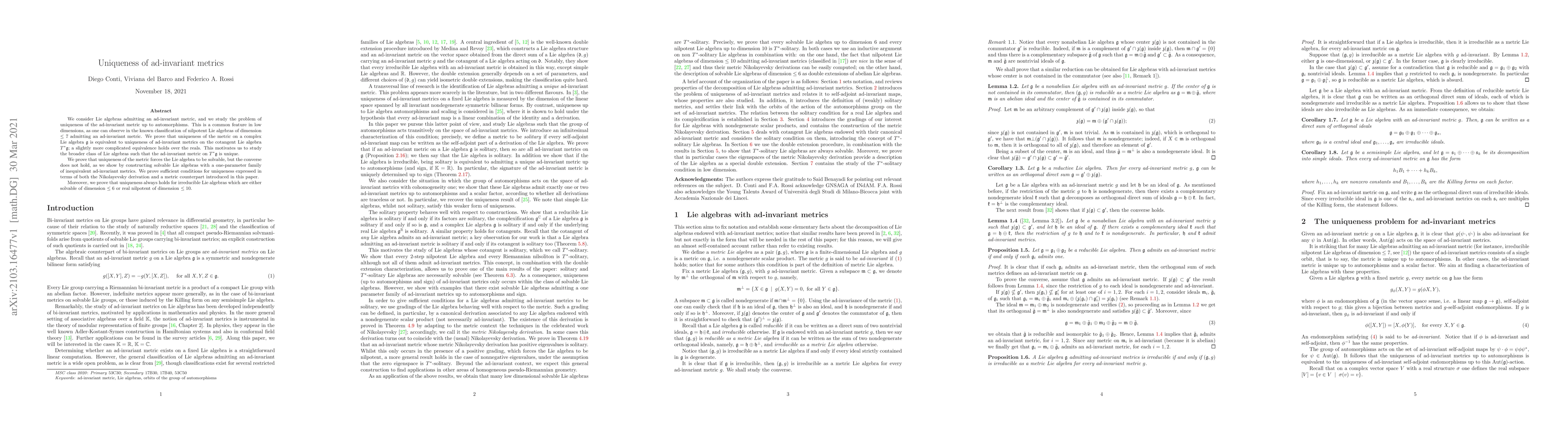 This paper investigates the uniqueness of ad-invariant metrics on Lie algebras, proving that such uniqueness is equivalent to that on the cotangent Lie algebra. It shows that solvable Lie algebras tend to have unique metrics, though exceptions exist, and establishes sufficient conditions for uniqueness involving a new metric concept.