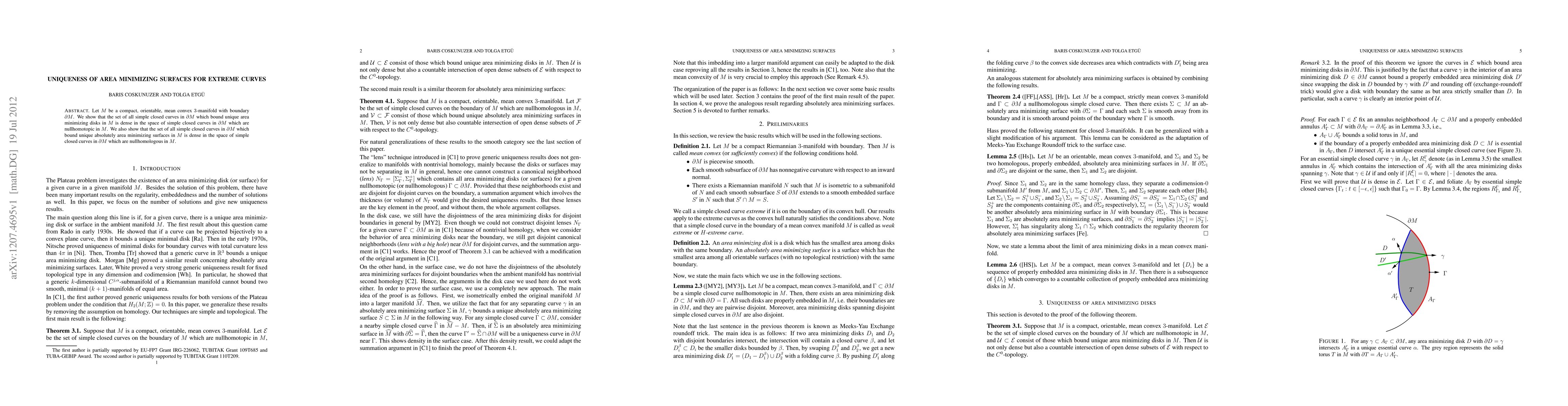 This paper demonstrates that simple closed curves in the boundary of a compact, orientable, mean convex 3-manifold with boundary that bound unique area minimizing disks or surfaces are densely distributed among all such curves that are nullhomotopic or nullhomologous in the manifold.
