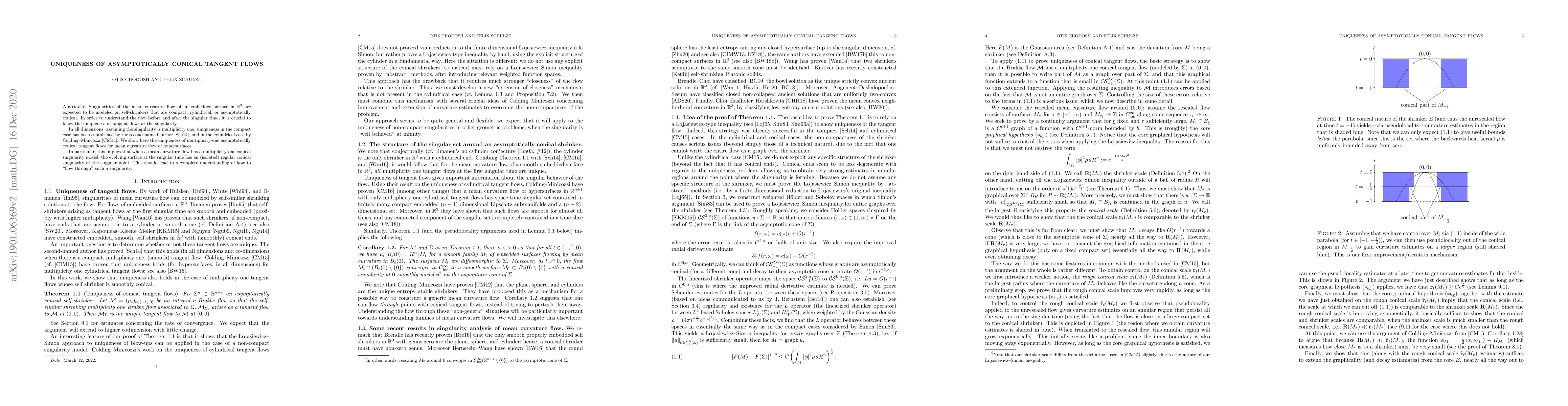 This paper establishes the uniqueness of multiplicity-one asymptotically conical tangent flows in mean curvature flow of hypersurfaces, crucial for understanding the behavior before and after singularities. This uniqueness implies that surfaces evolving through a conical singularity will have a regular conical singularity at the singular point, aiding in the comprehension of such singularities.