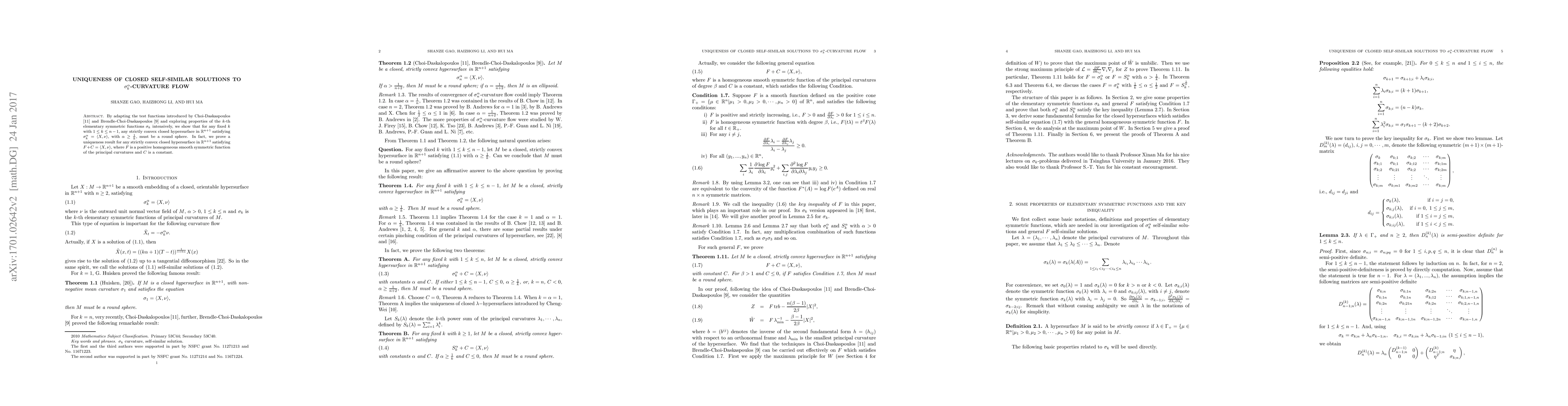 By adapting the test functions introduced by Choi-Daskaspoulos \cite{c-d} and Brendle-Choi-Daskaspoulos \cite{b-c-d} and exploring properties of the $k$-th elementary symmetric functions $\sigma_{k}$ intensively, we show that for any fixed $k$ with $1\leq k\leq n-1$, any strictly convex closed hypersurface in $\mathbb{R}^{n+1}$ satisfying $\sigma_{k}^{\alpha}=\langle X,\nu \rangle$, with $\alpha\geq \frac{1}{k}$, must be a round sphere. In fact, we prove a uniqueness result for any strictly convex closed hypersurface in $\mathbb{R}^{n+1}$ satisfying $F+C=\langle X,\nu \rangle$, where $F$ is a positive homogeneous smooth symmetric function of the principal curvatures and $C$ is a constant.