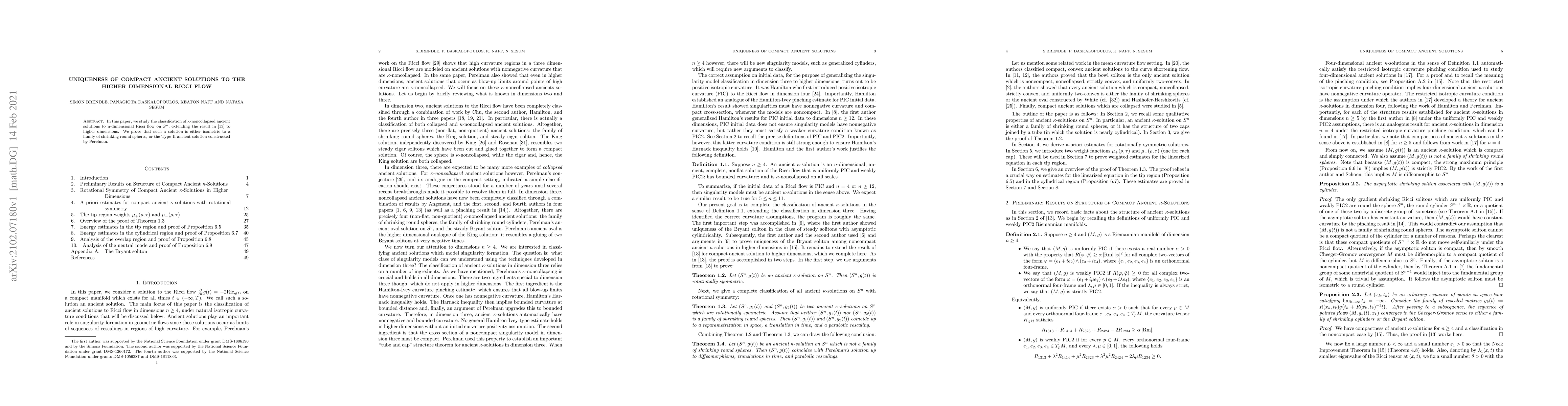 Summary: The paper classifies $\kappa$-noncollapsed ancient solutions to the n-dimensional Ricci flow on $S^n$, proving that these solutions are either isometric to shrinking round spheres or the Type II ancient solution by Perelman. This extends previous results to higher dimensions.