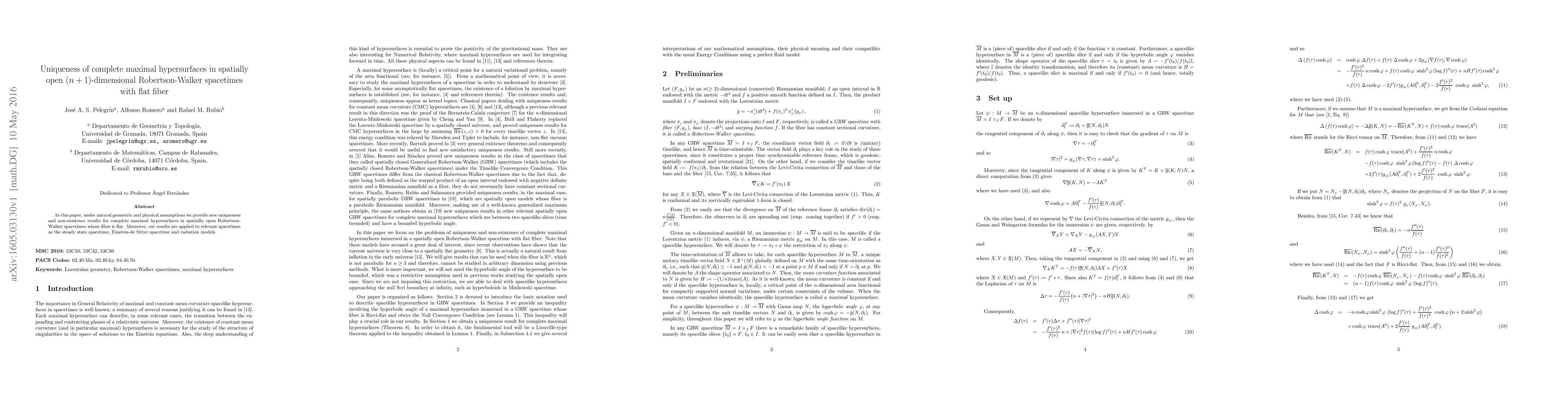The research employs geometric and physical assumptions to derive uniqueness and non-existence results for complete maximal hypersurfaces in spatially open Robertson-Walker spacetimes with flat fiber, applying these results to spacetimes like steady state, Einstein-de Sitter, and radiation models.