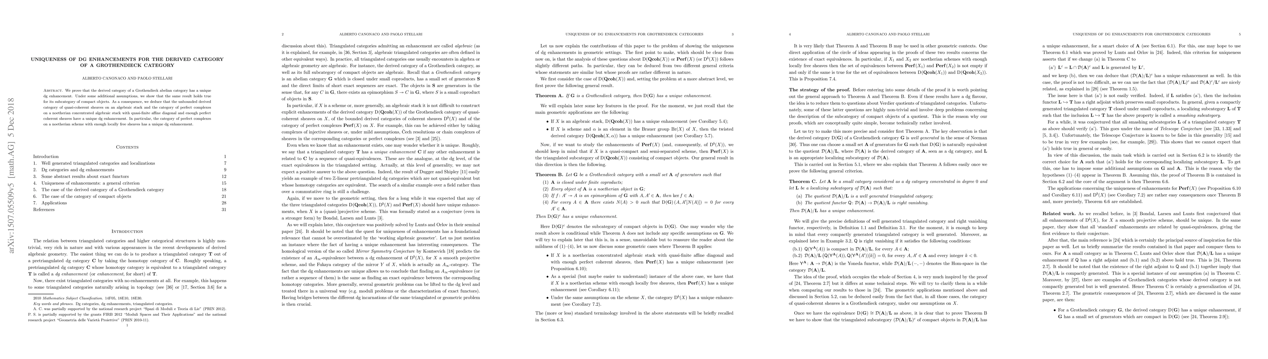 Summary: The research establishes that the derived category of a Grothendieck abelian category possesses a unique dg enhancement, extending this uniqueness to subcategories of compact objects under additional conditions. This leads to the conclusion that the derived categories of certain algebraic stacks and perfect complexes on noetherian schemes also have a unique dg enhancement.