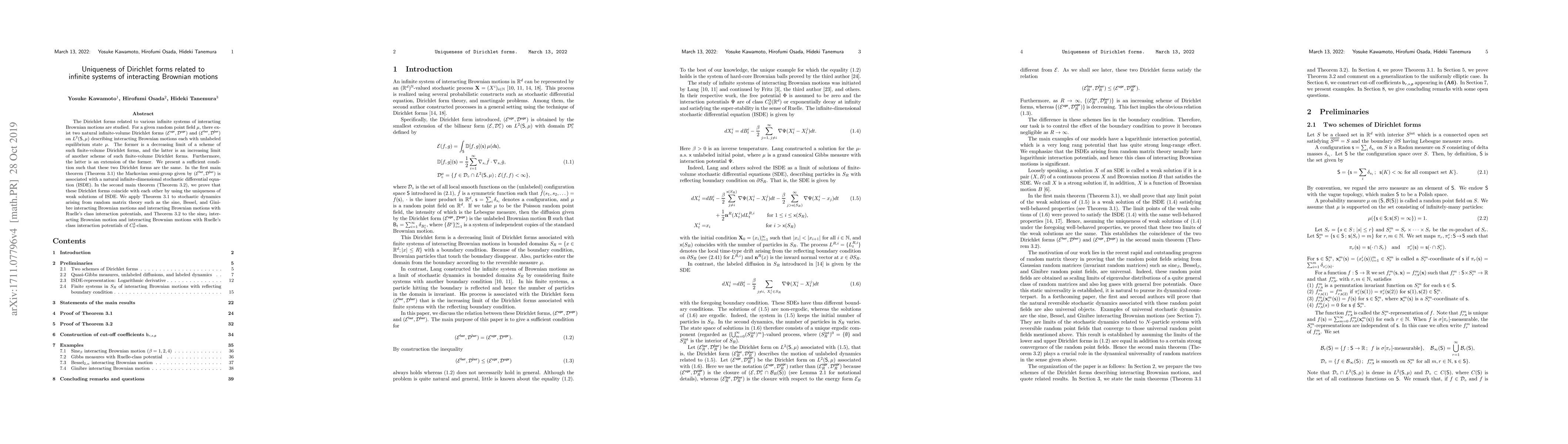 The Dirichlet forms related to various infinite systems of interacting Brownian motions are studied. For a given random point field $ \mu $, there exist two natural infinite-volume Dirichlet forms $ (\mathcal{E}^{\mathsf{upr}},\mathcal{D}^{\mathsf{upr}})$ and $(\mathcal{E}^{\mathsf{lwr}},\mathcal{D}^{\mathsf{lwr}})$ on $ L^2(\mathsf{S} ,\mu ) $ describing interacting Brownian motions each with unlabeled equilibrium state $ \mu $. The former is a decreasing limit of a scheme of such finite-volume Dirichlet forms, and the latter is an increasing limit of another scheme of such finite-volume Dirichlet forms. Furthermore, the latter is an extension of the former. We present a sufficient condition such that these two Dirichlet forms are the same. In the first main theorem (Theorem 3.1) the Markovian semi-group given by $(\mathcal{E}^{\mathsf{lwr}},\mathcal{D}^{\mathsf{lwr}})$ is associated with a natural infinite-dimensional stochastic differential equation (ISDE). In the second main theorem (Theorem 3.2), we prove that these Dirichlet forms coincide with each other by using the uniqueness of {\ws}s of ISDE. We apply Theorem 3.1 to stochastic dynamics arising from random matrix theory such as the sine, Bessel, and Ginibre interacting Brownian motions and interacting Brownian motions with Ruelle's class interaction potentials, and Theorem 3.2 to the sine$ _2$ interacting Brownian motion and interacting Brownian motions with Ruelle's class interaction potentials of $ C_0^3 $-class.