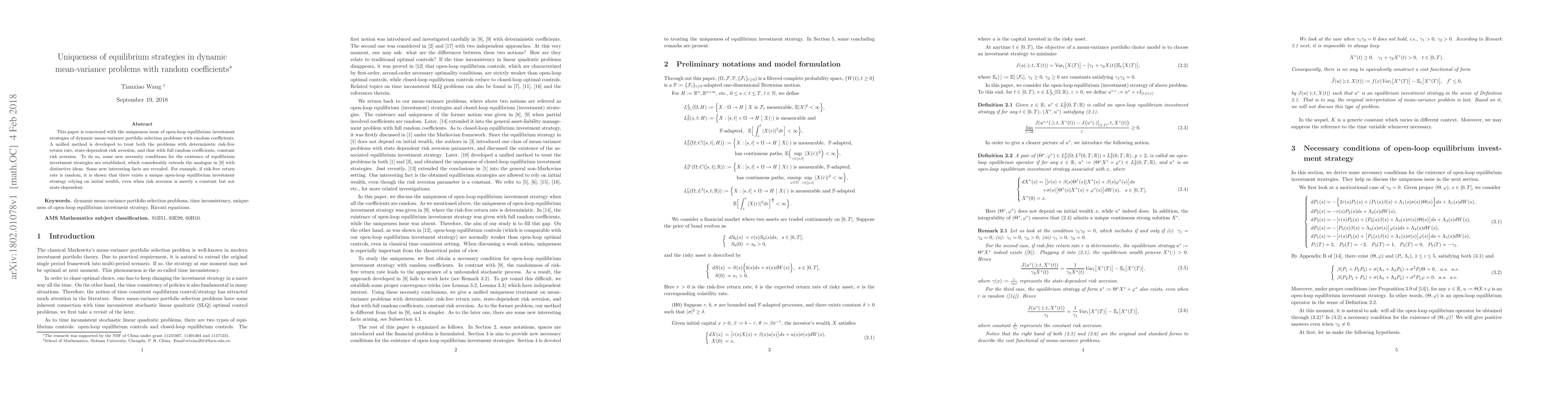 The paper develops a unified method to treat dynamic mean-variance portfolio selection problems with both deterministic and random coefficients, including cases with state-dependent risk aversion and full random coefficients.