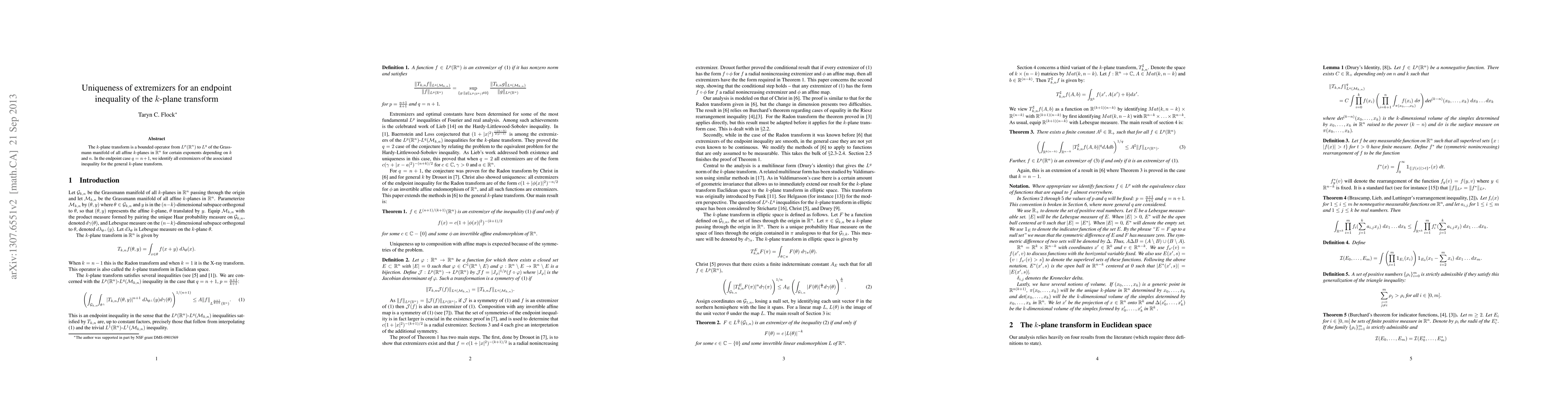 The $k$-plane transform is a bounded operator from $\lp$ to $L^q$ of the Grassmann manifold of all affine $k$-planes in $\R^n$ for certain exponents depending on $k$ and $n$. In the endpoint case $q=n+1$, we identify all extremizers of the associated inequality for the general $k$-plane transform.