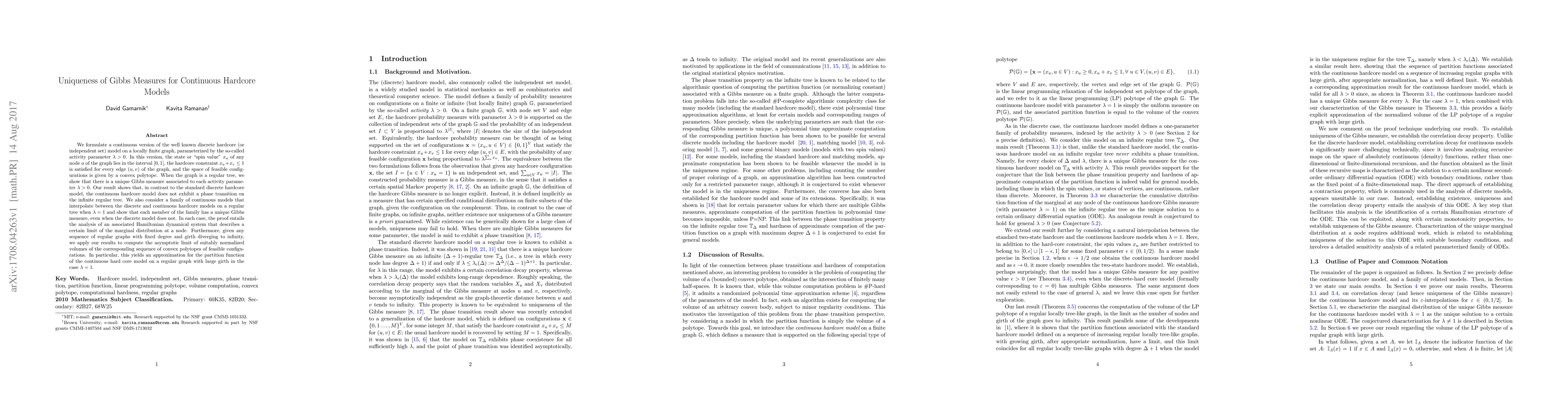 This paper investigates a continuous version of the hardcore model on a locally finite graph, demonstrating that for regular trees, there is a unique Gibbs measure for each activity parameter. Unlike the discrete model, the continuous version does not exhibit a phase transition on infinite regular trees, and the results extend to a family of interpolated models.