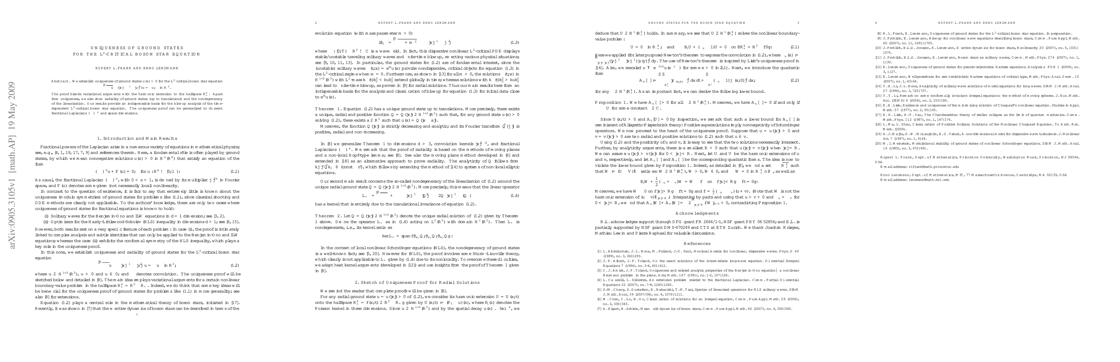 This paper establishes the uniqueness of non-negative ground states for the $L^2$-critical boson star equation in $\R^3$, using a combination of variational methods and harmonic extension techniques. Additionally, it demonstrates the radiality and nondegeneracy of these ground states, which are crucial for analyzing the blowup behavior of the time-dependent equation.