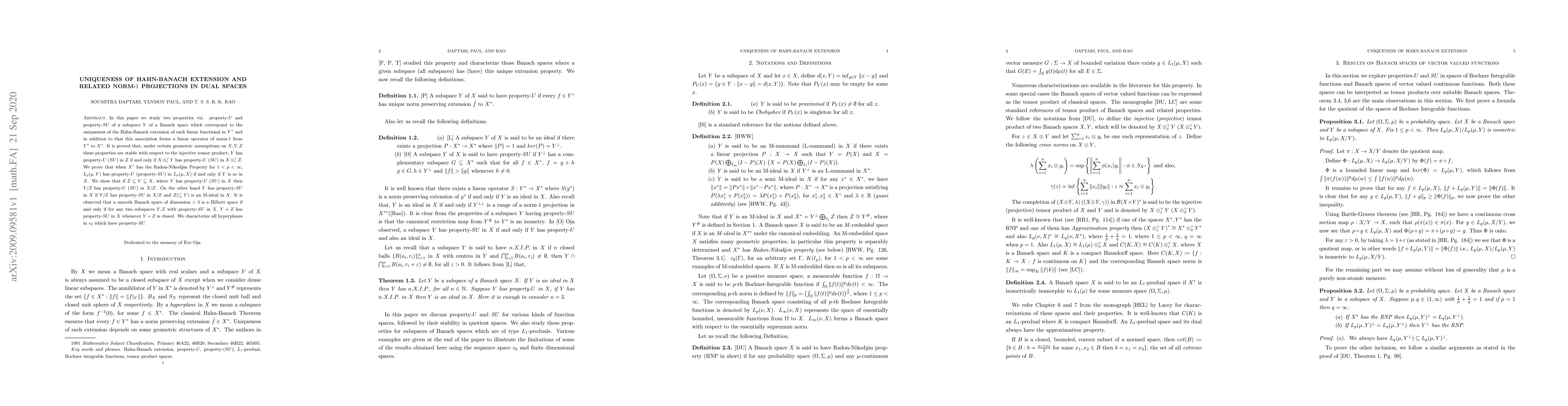 In this paper we study two properties viz. property-$U$ and property-$SU$ of a subspace $Y$ of a Banach space which correspond to the uniqueness of the Hahn-Banach extension of each linear functional in $Y^*$ and in addition to that this association forms a linear operator of norm-1 from $Y^*$ to $X^*$. It is proved that, under certain geometric assumptions on $X, Y, Z$ these properties are stable with respect to the injective tensor product; $Y$ has property-$U$ ($SU$) in $Z$ if and only if $X\otimes_\e^\vee Y$ has property-$U$ ($SU$) in $X\otimes_\e^\vee Z$. We prove that when $X^*$ has the Radon-Nikod$\acute{y}$m Property for $1