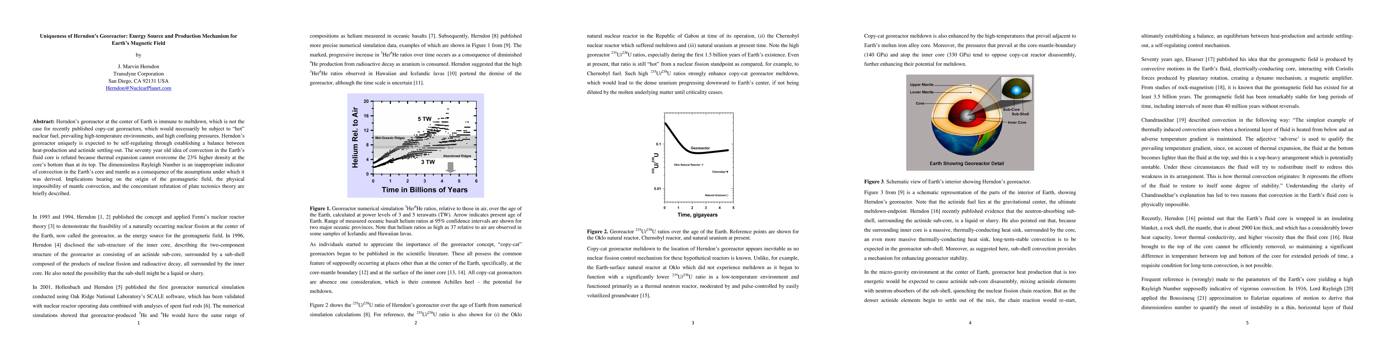 This paper argues that Herndon's georeactor model is uniquely capable of sustaining Earth's magnetic field without meltdown, contrasting it with other georeactor models. It refutes the idea of mantle convection and plate tectonics, suggesting that the Rayleigh Number is not a valid indicator of convection in Earth's core and mantle.