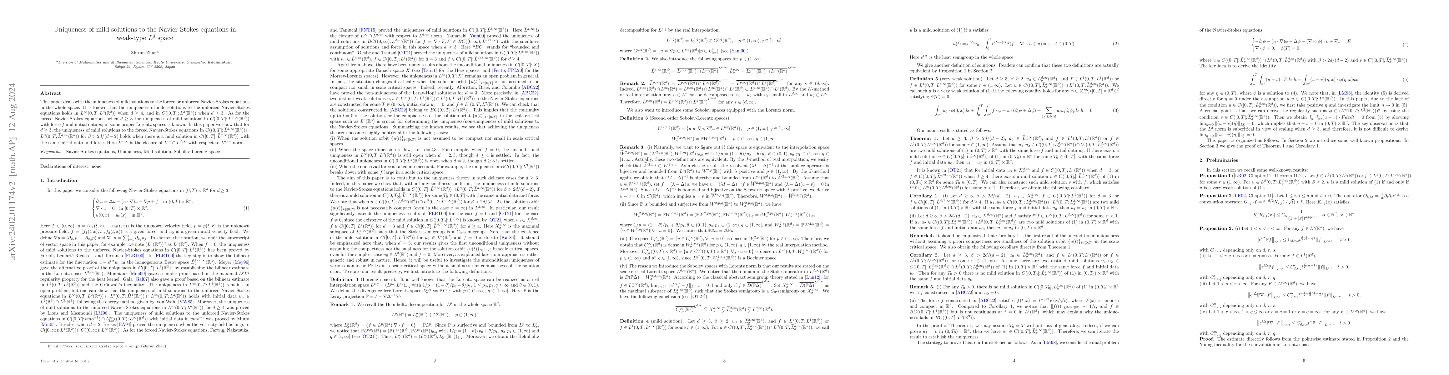 This paper proves the uniqueness of mild solutions to the forced Navier-Stokes equations in $\big(C((0,T];L^d(\mathbb{R}^d))\cap L^\infty((0,T);L^d(\mathbb{R}^d))\big)^d$ for $d\geq3$, extending known results for unforced cases. It also establishes the uniqueness of mild solutions for unforced Navier-Stokes equations in $\big(C((0,T];L^3(\mathbb{R}^3))\cap L^\infty((0,T);L^3(\mathbb{R}^3))\big)^3$.