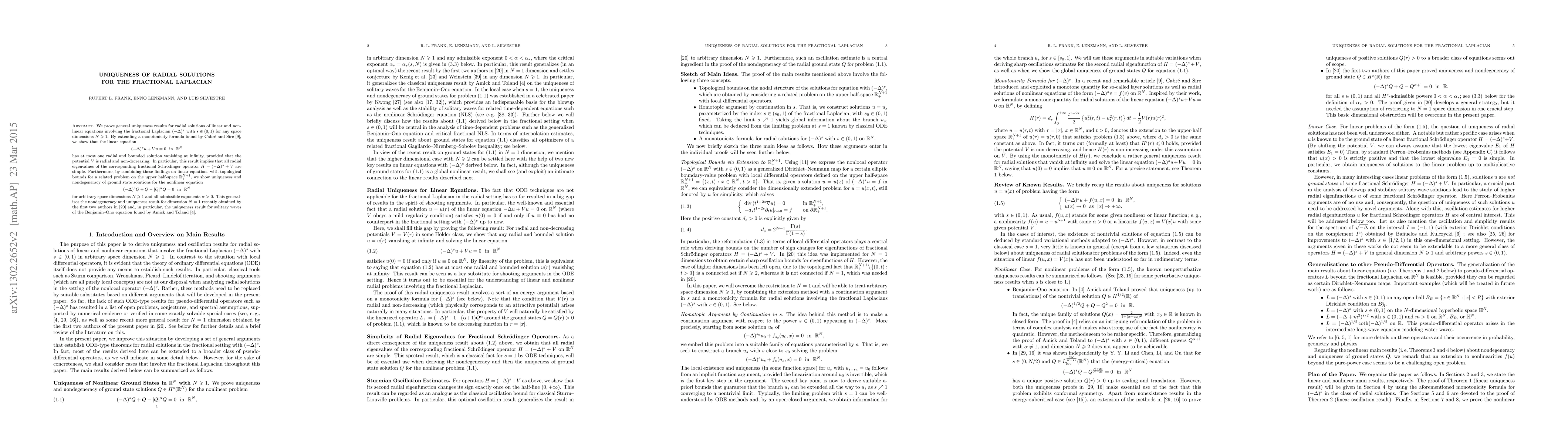 The paper proves uniqueness of radial solutions for fractional Laplacian equations in various dimensions, generalizing previous results and applying to nonlinear Schrödinger operators with specific conditions.