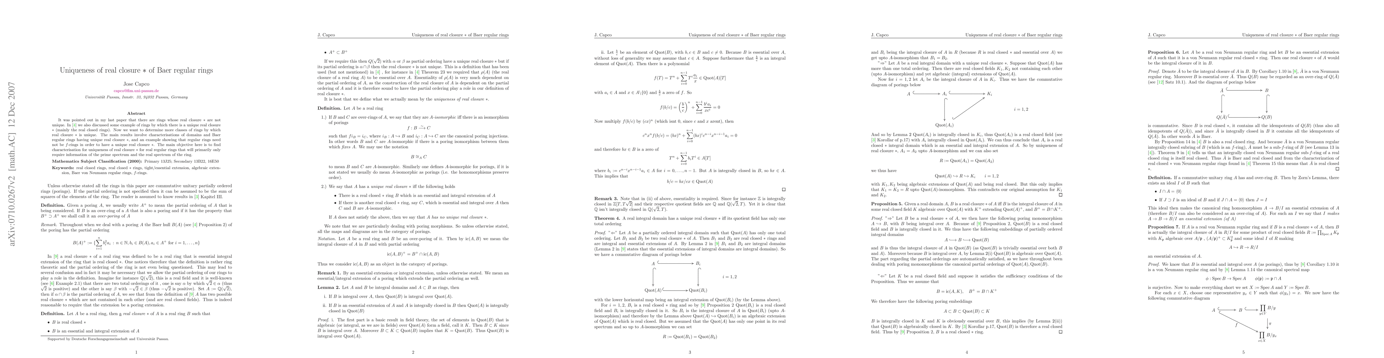 The paper presents novel characterizations and conditions for the uniqueness of real closure * in Baer regular rings, enhancing the theoretical framework of real-closed fields and their extensions.