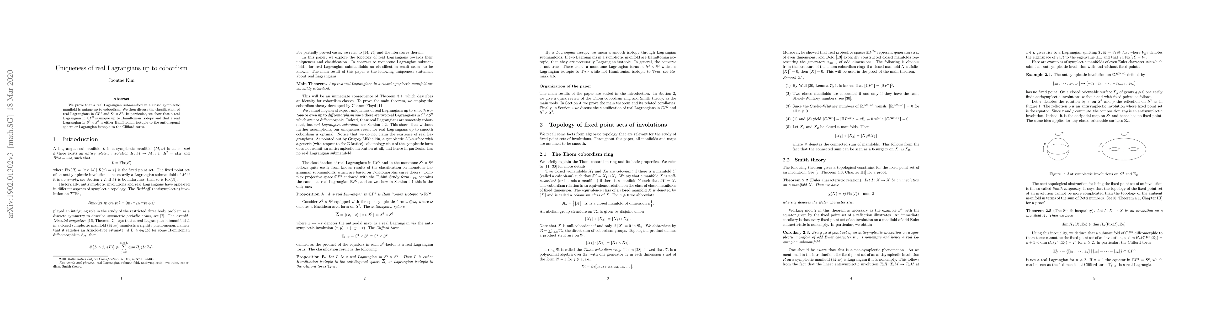 A real Lagrangian submanifold in a closed symplectic manifold is unique up to cobordism, with specific classifications found for πP^2 and S^2 imes S^2.