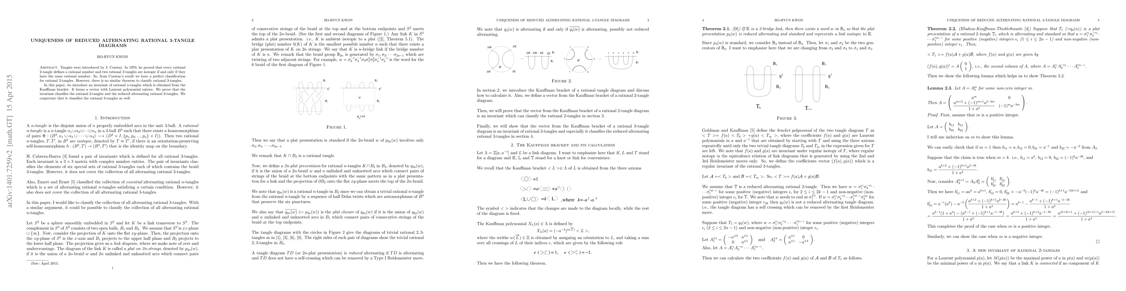 This paper proposes a new invariant for rational n-tangles derived from the Kauffman bracket, demonstrating its effectiveness in classifying rational 2-tangles and reduced alternating rational 3-tangles, while also hypothesizing its potential to classify rational 3-tangles.