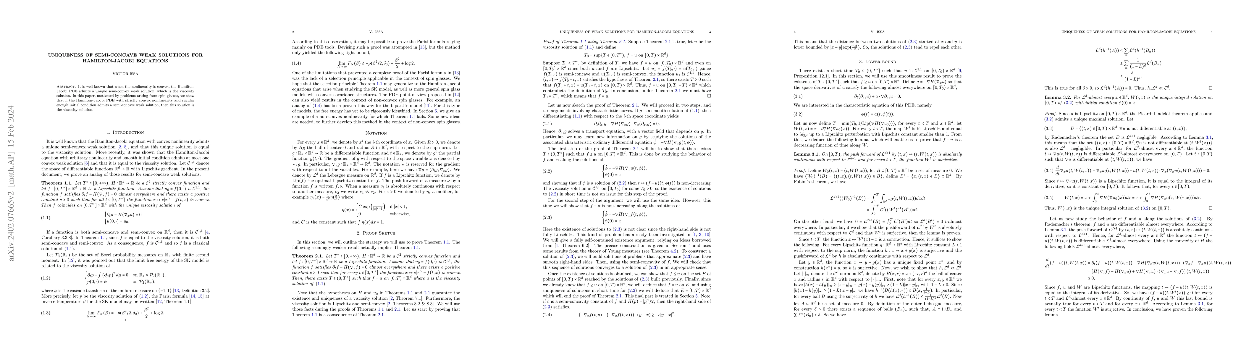 This paper demonstrates that for Hamilton-Jacobi PDEs with strictly convex nonlinearity and sufficiently regular initial conditions, any semi-concave weak solution is unique and coincides with the viscosity solution, addressing problems from spin glasses.