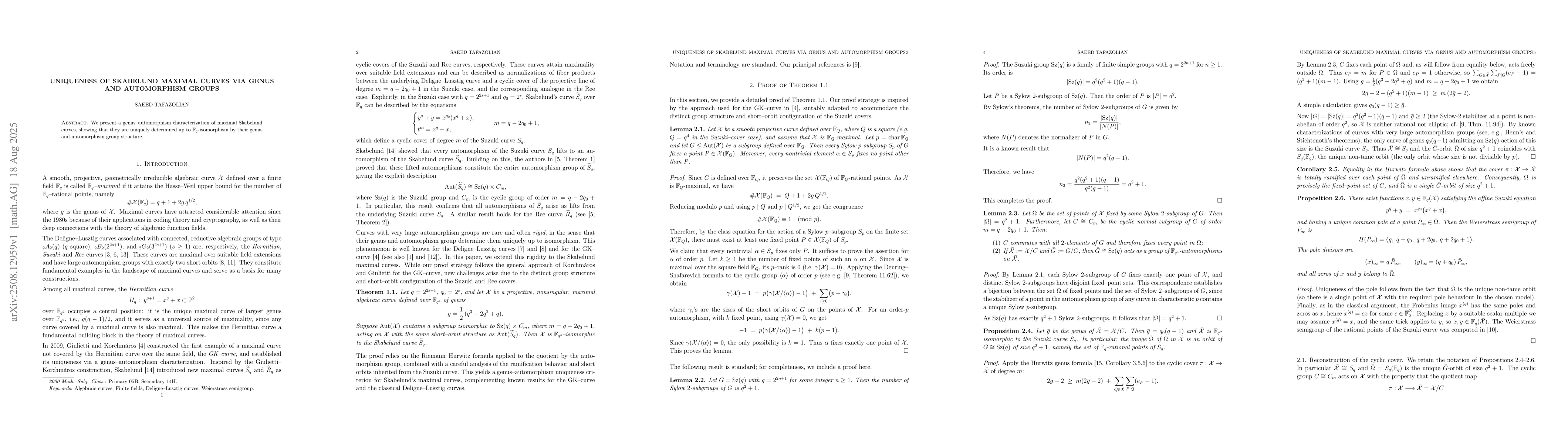 We present a genus-automorphism characterization of maximal Skabelund curves, showing that they are uniquely determined up to $\mathbb{F}_{q}$-isomorphism by their genus and automorphism group structure.