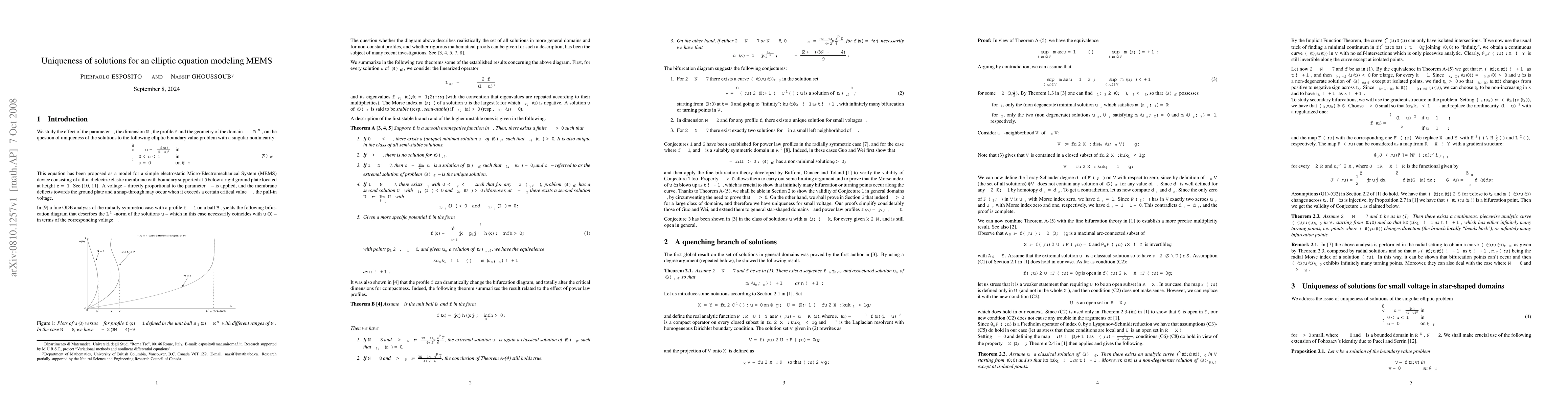 This research investigates the conditions for unique solutions to a specific elliptic equation modeling a Micro-Electromechanical System (MEMS) device, examining the impact of parameters like lambda, dimension N, profile f, and domain geometry u201cOmegau201d on solution uniqueness. The model describes a thin elastic membrane influenced by a singular nonlinearity.
