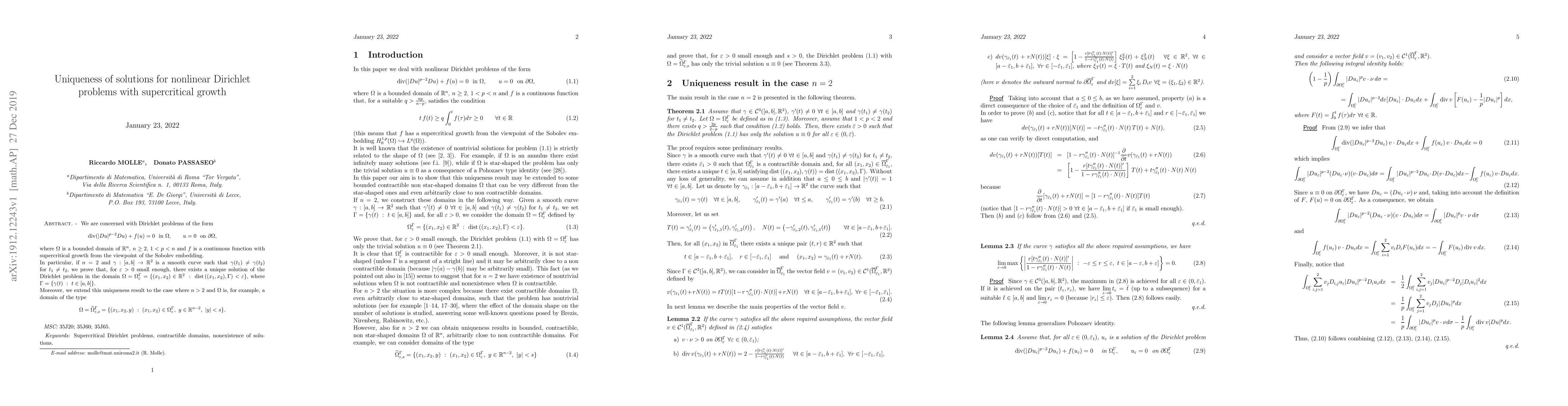 Researchers prove the uniqueness of solutions for nonlinear Dirichlet problems with supercritical growth in specific domains, showing that small perturbations can lead to unique solutions, with implications for understanding complex systems.