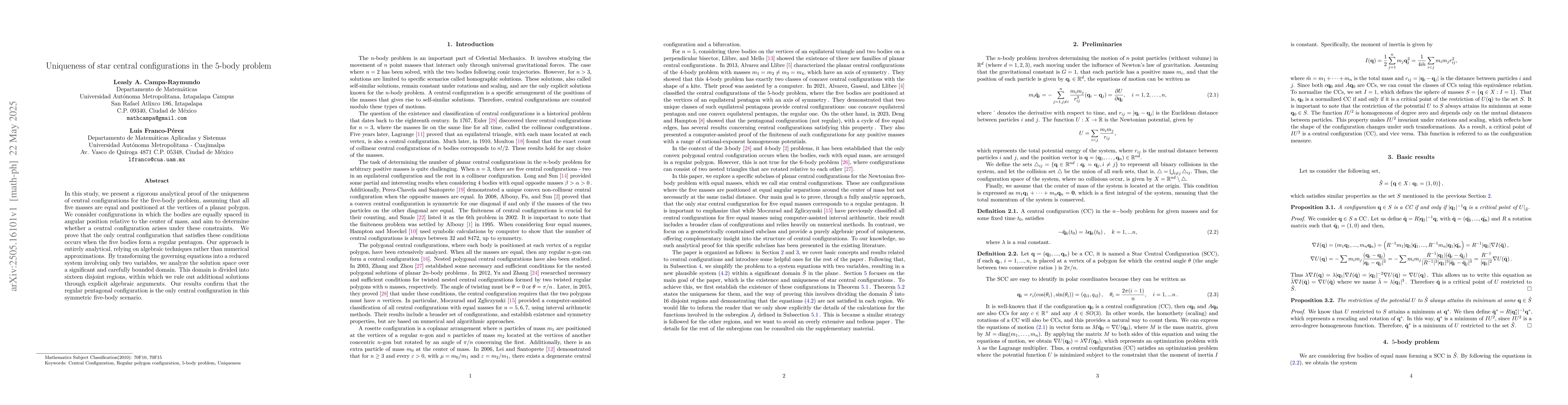 This study provides a rigorous proof of the uniqueness of star central configurations in the symmetric five-body problem, contributing to the understanding of celestial mechanics and planetary dynamics.