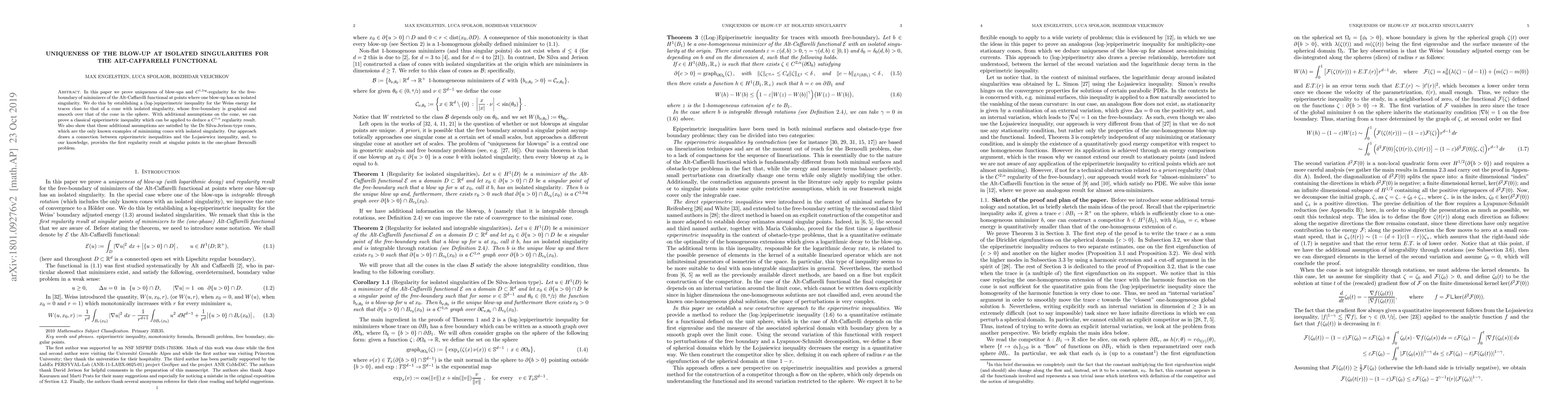 This paper establishes uniqueness and $C^{1,\log}$-regularity for the free-boundary of minimizers of the Alt-Caffarelli functional at isolated singularities, leveraging a (log-)epiperimetric inequality and connections to the \L ojasiewicz inequality. It also proves $C^{1,\alpha}$ regularity under additional cone assumptions, which are met by known De Silva-Jerison-type cones.