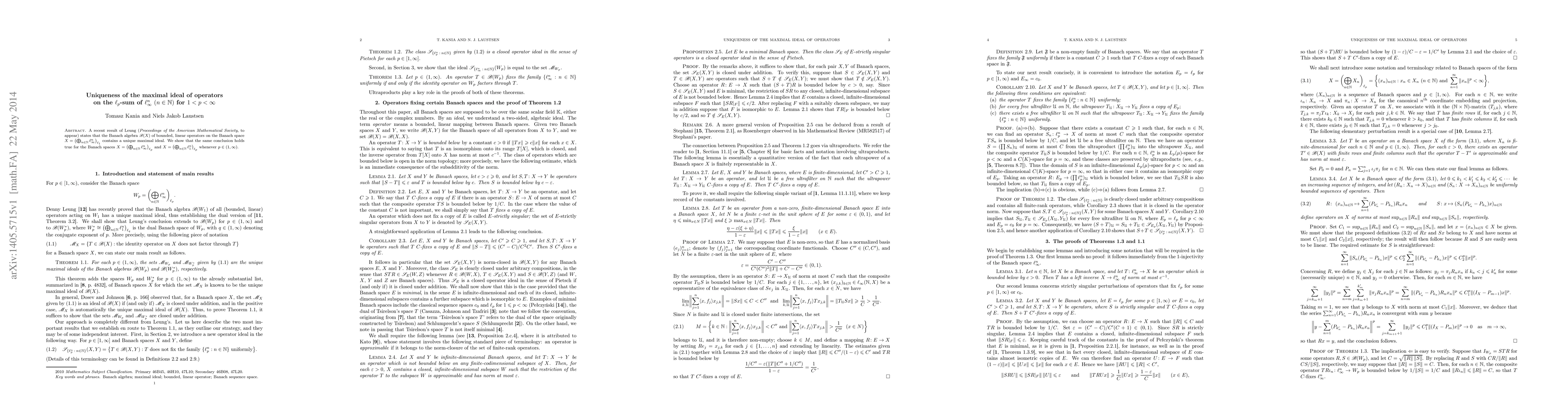 A recent result of Leung (Proceedings of the American Mathematical Society, to appear) states that the Banach algebra $\mathscr{B}(X)$ of bounded, linear operators on the Banach space $X=\bigl(\bigoplus_{n\in\mathbb{N}}\ell_\infty^n\bigr)_{\ell_1}$ contains a unique maximal ideal. We show that the same conclusion holds true for the Banach spaces $X=\bigl(\bigoplus_{n\in\mathbb{N}}\ell_\infty^n\bigr)_{\ell_p}$ and $X=\bigl(\bigoplus_{n\in\mathbb{N}}\ell_1^n\bigr)_{\ell_p}$ whenever $p\in(1,\infty)$.