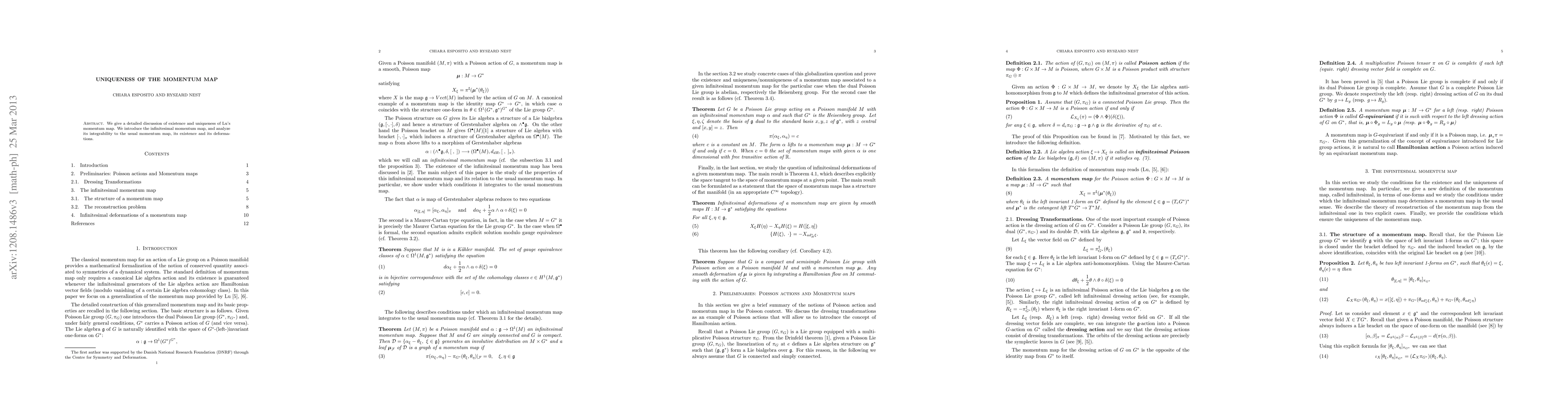 This paper discusses the existence and uniqueness of Lu's momentum map, introducing the concept of the infinitesimal momentum map and exploring its properties. It outlines the conditions under which the momentum map can be uniquely reconstructed from the infinitesimal one.