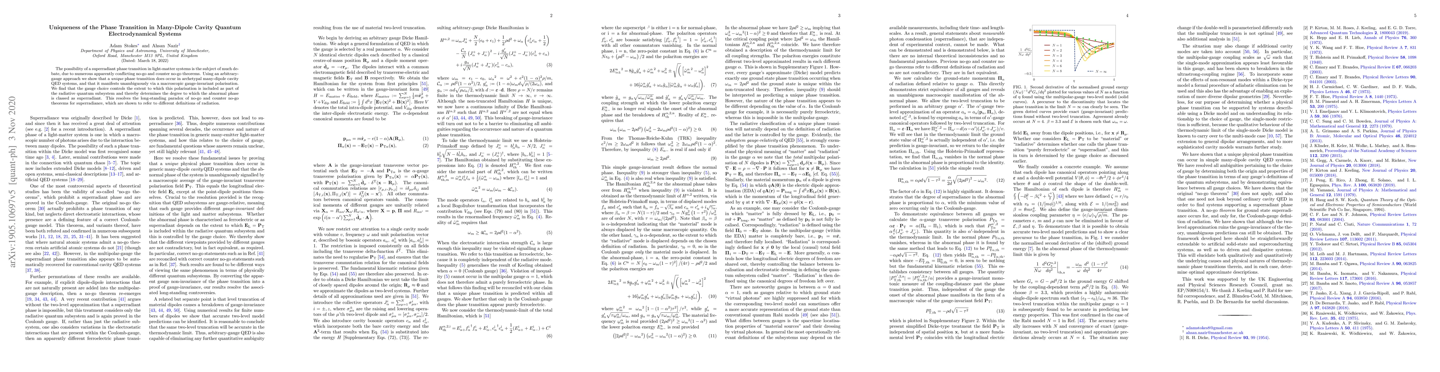 This paper demonstrates a unique, unambiguous superradiant phase transition in many-dipole cavity quantum electrodynamical systems, resolving conflicting no-go and counter no-go theorems by showing that gauge choice influences the classification of the transition as superradiant.
