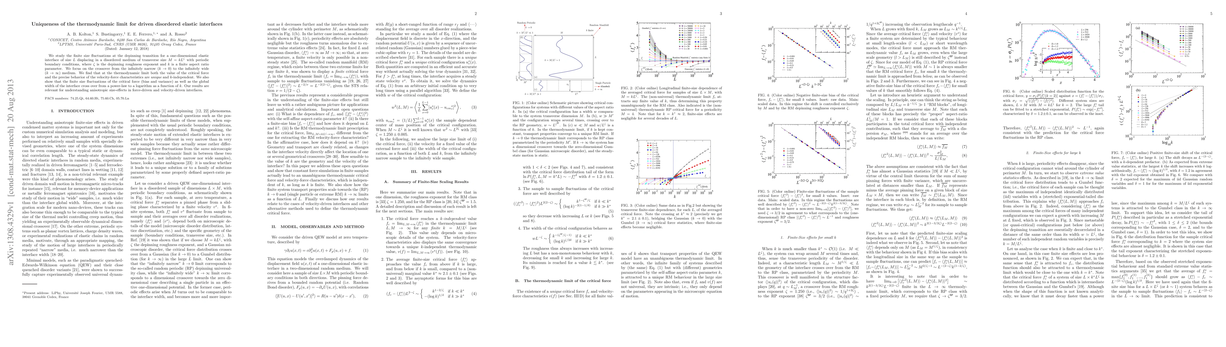 This paper investigates the depinning transition in a one-dimensional elastic interface in a disordered medium, revealing that the thermodynamic limit's critical force and velocity-force characteristics are unique and independent of the medium's width. The study also finds that fluctuations and interface width transition from power-law to logarithmic behavior as the medium width varies.
