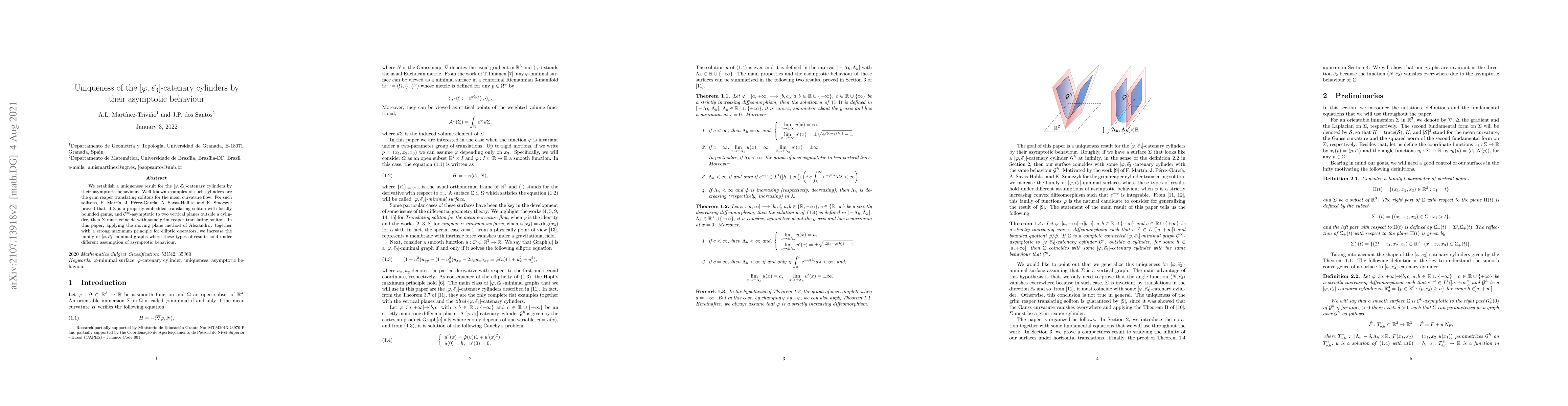 A study establishes uniqueness of $[ heta,e_3]$-catenary cylinders based on their asymptotic behavior using the moving plane method and a strong maximum principle for elliptic operators.