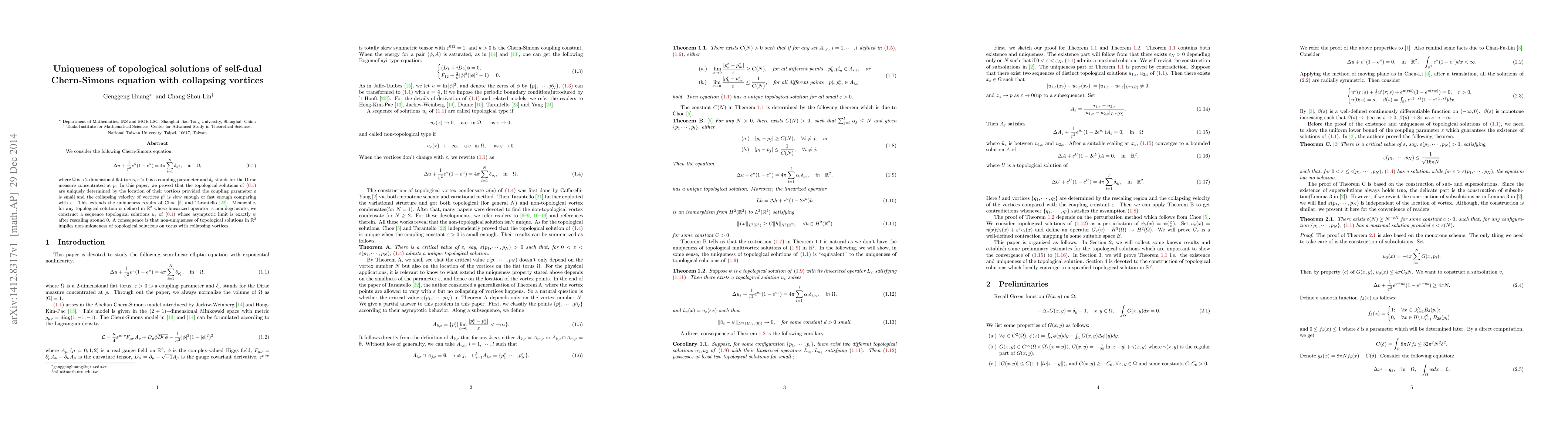 Researchers prove that topological solutions of a specific Chern-Simons equation have unique vortices when certain conditions are met, extending earlier findings.