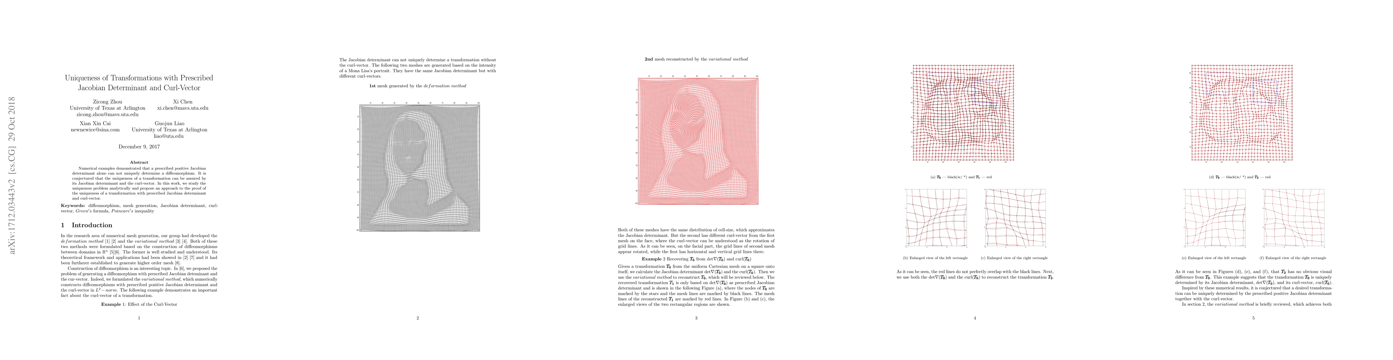 Numerical examples demonstrated that a prescribed positive Jacobian determinant alone can not uniquely determine a diffeomorphism. It is conjectured that the uniqueness of a transformation can be assured by its Jacobian determinant and the curl-vector. In this work, we study the uniqueness problem analytically and propose an approach to the proof of the uniqueness of a transformation with prescribed Jacobian determinant and curl-vector.