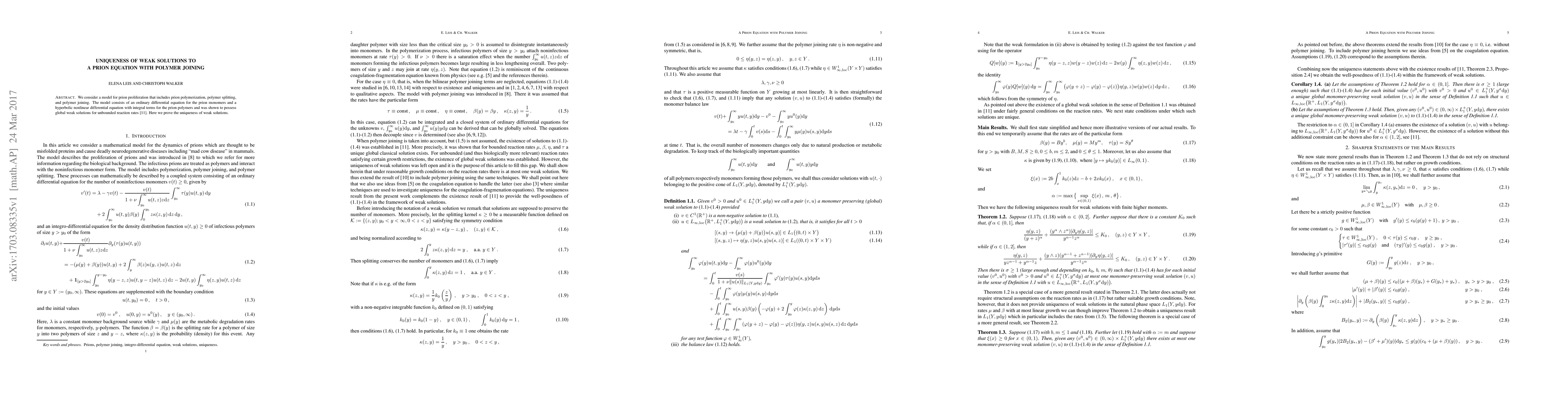 This paper proves the uniqueness of weak solutions to a prion equation with polymer joining, showing that there is only one solution for a given set of initial conditions.