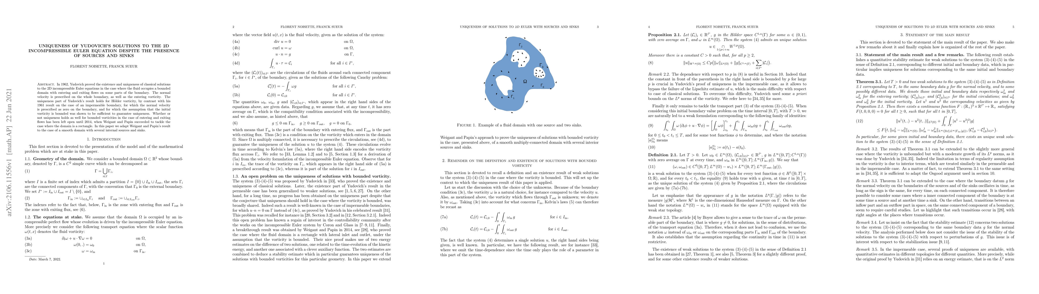 This paper demonstrates the uniqueness of Yudovich's solutions to the 2D incompressible Euler equation, even when the fluid domain has sources and sinks, extending Weigant and Papin's 2014 result for rectangular domains to smooth domains.