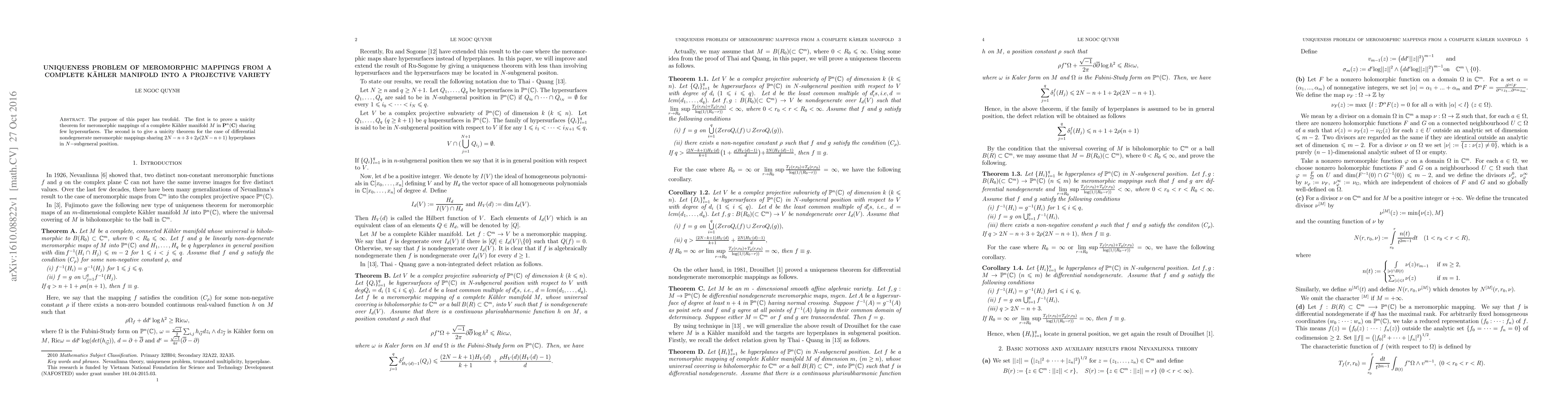 This paper proves a uniqueness theorem for meromorphic mappings from a complete Kähler manifold into projective space, sharing few hypersurfaces, and extends this to differential nondegenerate mappings sharing a specific number of hyperplanes in subgeneral position.
