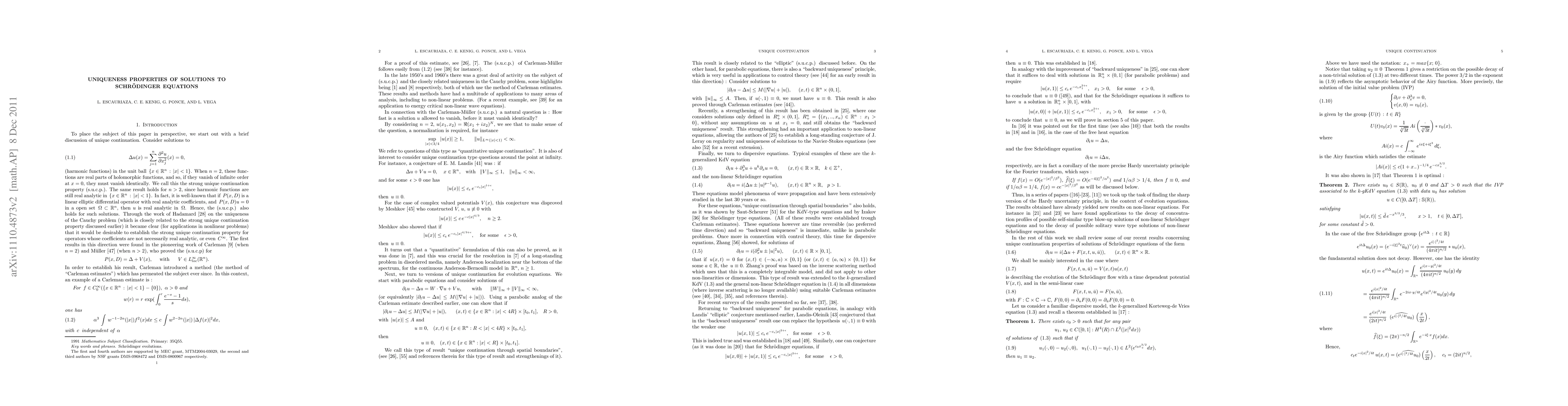 In this work we shall review some of our recent results concerning unique continuation properties of solutions of Schr\"odinger equations. In this equations we include linear ones with a time depending potential and semi-linear ones.