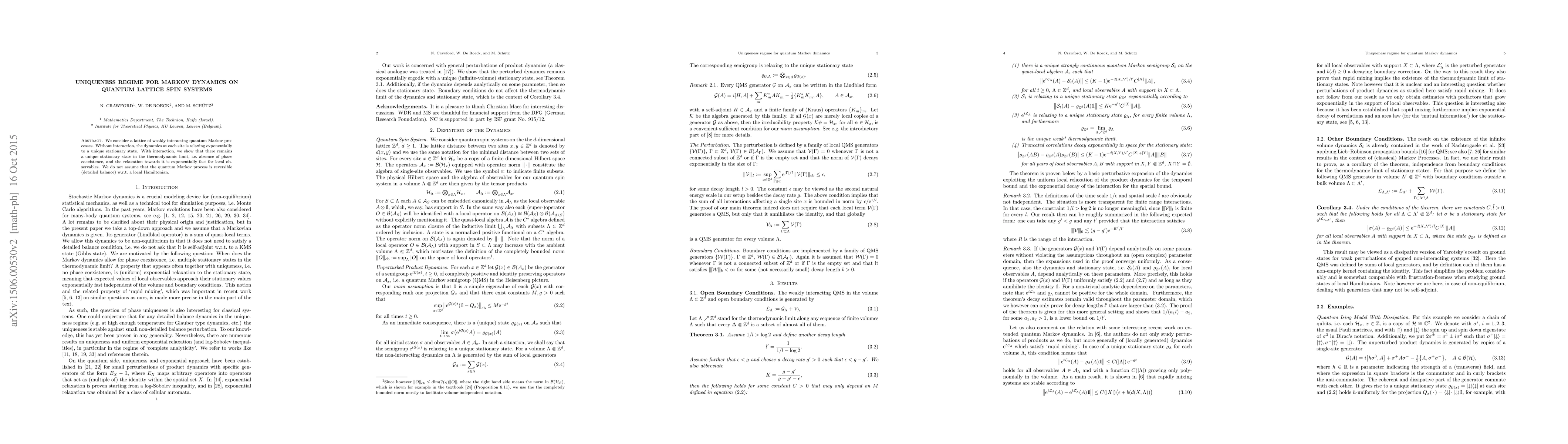 We consider a lattice of weakly interacting quantum Markov processes. Without interaction, the dynamics at each site is relaxing exponentially to a unique stationary state. With interaction, we show that there remains a unique stationary state in the thermodynamic limit, i.e. absence of phase coexistence, and the relaxation towards it is exponentially fast for local observables. We do not assume that the quantum Markov process is reversible (detailed balance) w.r.t. a local Hamiltonian.