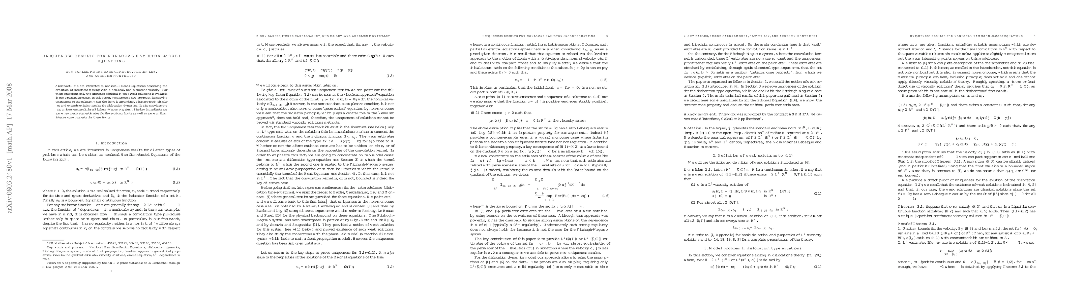 This paper proposes a novel method to prove the uniqueness of solutions for nonlocal Eikonal Equations, extending existing results for dislocation dynamics and providing the first uniqueness result for a Fitzhugh-Nagumo system. The approach leverages new perimeter estimates and a uniform interior cone property for evolving fronts.