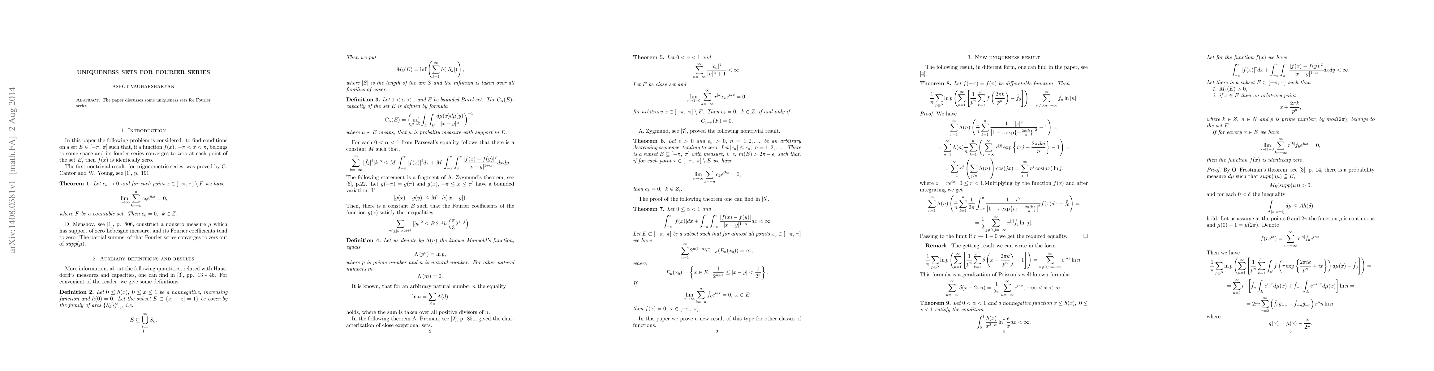 This paper explores unique sets for Fourier series, which help determine if a function can be represented by a specific set of frequencies. The study contributes to the understanding of these sets and their applications in signal processing and analysis.