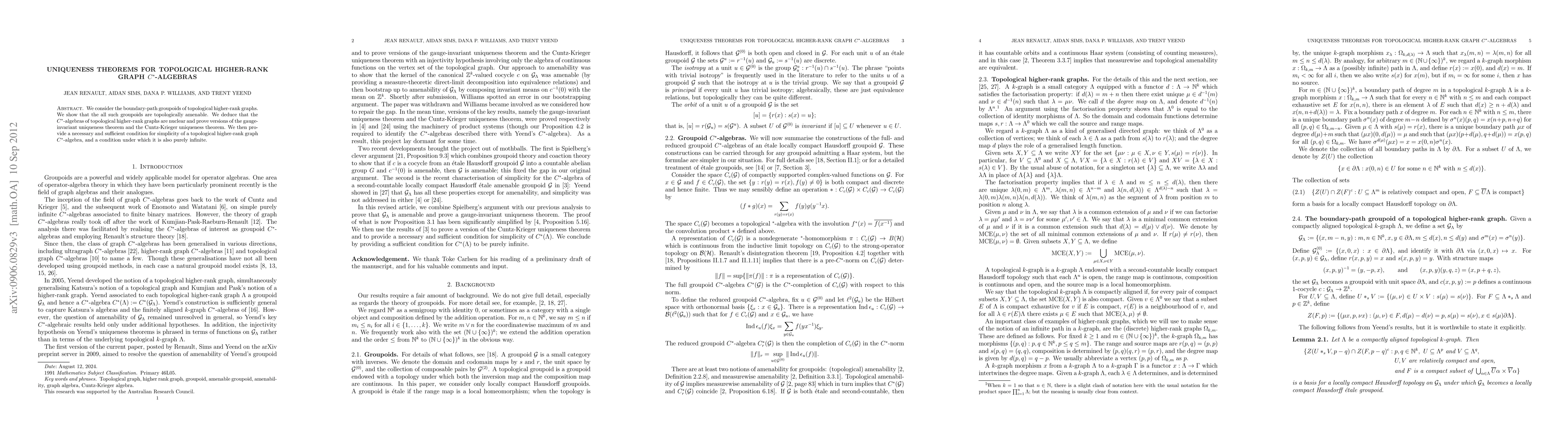 We consider the boundary-path groupoids of topological higher-rank graphs. We show that the all such groupoids are topologically amenable. We deduce that the C*-algebras of topological higher-rank graphs are nuclear and prove versions of the gauge-invariant uniqueness theorem and the Cuntz-Krieger uniqueness theorem. We then provide a necessary and sufficient condition for simplicity of a topological higher-rank graph C*-algebra, and a condition under which it is also purely infinite.