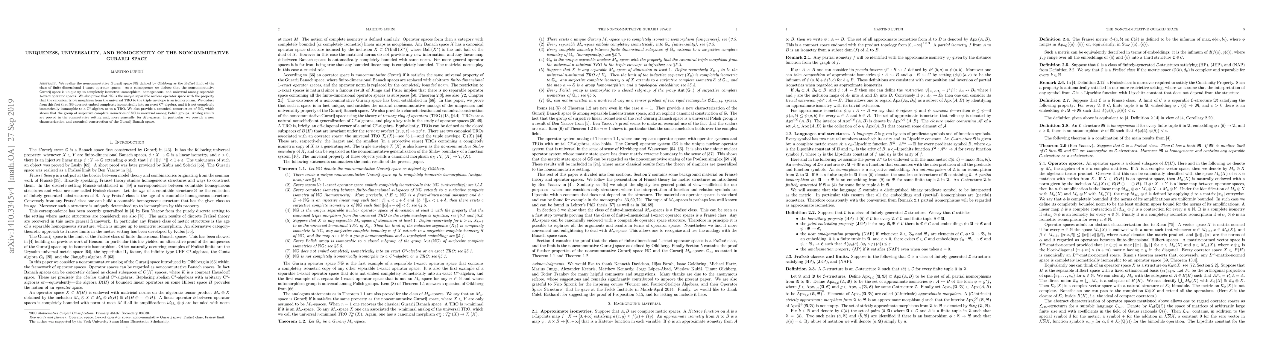We realize the noncommutative Gurarij space $\mathbb{NG}$ defined by Oikhberg as the Fra\"{\i}ss\'{e} limit of the class of finite-dimensional $1$-exact operator spaces. As a consequence we deduce that the concommutative Gurarij space is unique up to completely isometric isomorphism, homogeneous, and universal among separable $1$-exact operator spaces. We also prove that $\mathbb{NG}$ is the unique separable nuclear operator space with the property that the canonical triple morphism from the universal TRO to the triple envelope is an isomorphism. We deduce from this fact that $\mathbb{NG}$ does not embed completely isometrically into an exact C*-algebra, and it is not completely isometrically isomorphic to a C*-algebra or to a TRO. We also provide a canonical construction of $\mathbb{NG}$, which shows that the group of surjective complete isometries of $\mathbb{NG}$ is universal among Polish groups. Analog results are proved in the commutative setting and, more generally, for $M_{n}$-spaces. In particular, we provide a new characterization and canonical construction of the Gurarij Banach space.