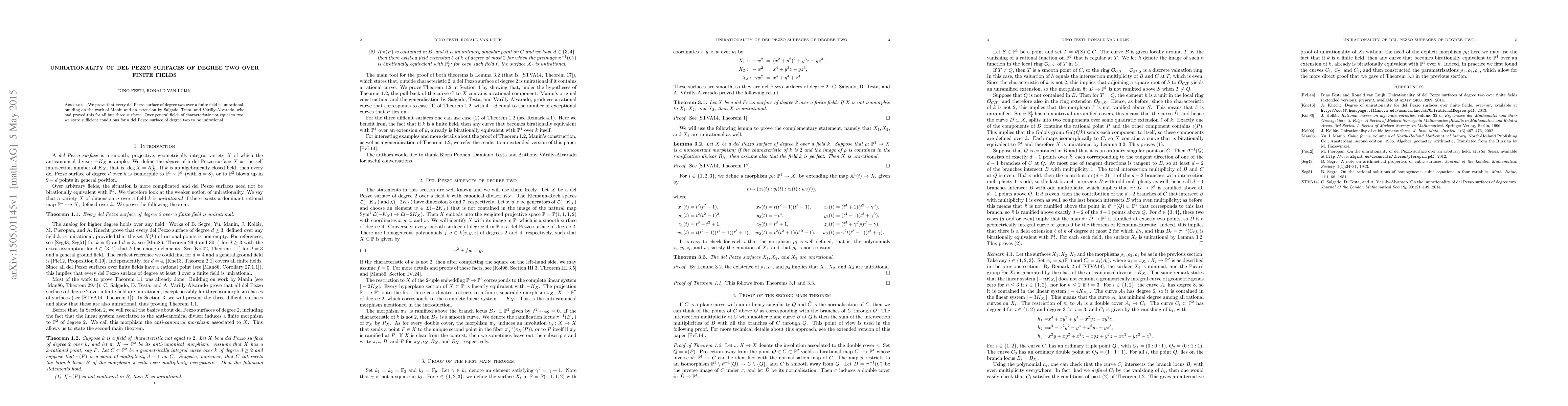 The paper proves the unirationality of all del Pezzo surfaces of degree two over finite fields, completing previous work that left three cases unresolved. It also provides conditions for such surfaces to be unirational over general fields of characteristic not equal to two.