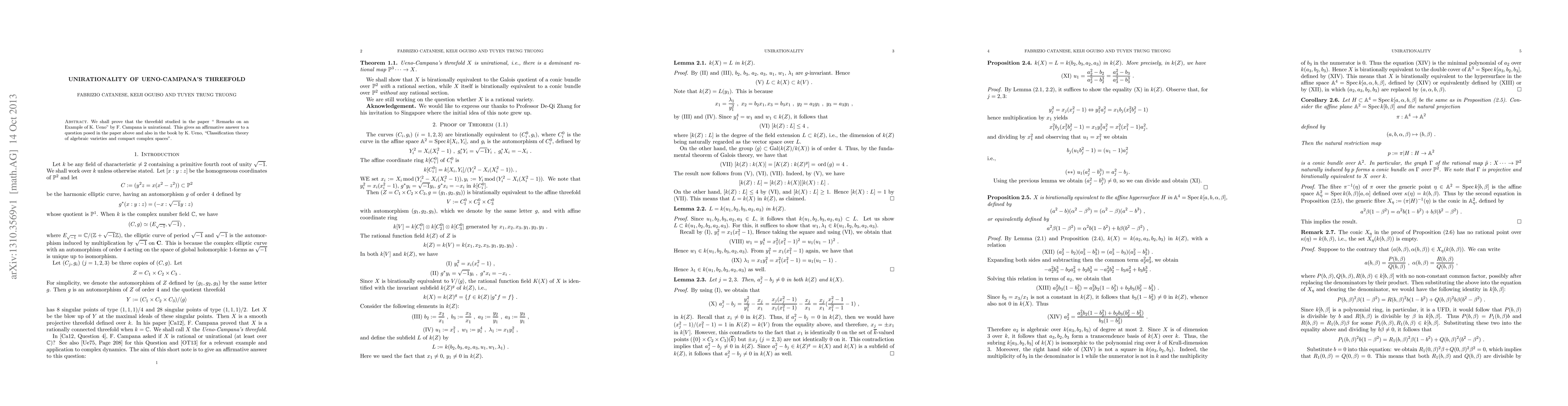 We shall prove that the threefold studied in the paper "Remarks on an Example of K. Ueno" by F. Campana is unirational. This gives an affirmative answer to a question posed in the paper above and also in the book by K. Ueno, "Classification theory of algebraic varieties and compact complex spaces".