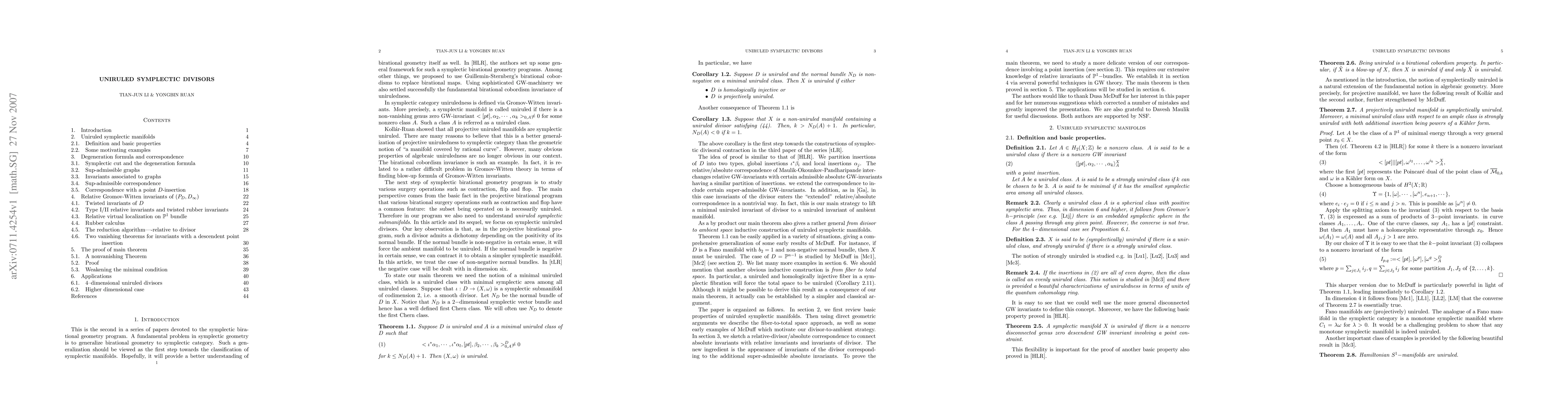 This paper explores symplectic birational geometry, demonstrating that a positive uniruled symplectic divisor implies the ambient manifold is uniruled, confirming a part of the uniruled symplectic divisor dichotomy and generalizing McDuff's constructions.