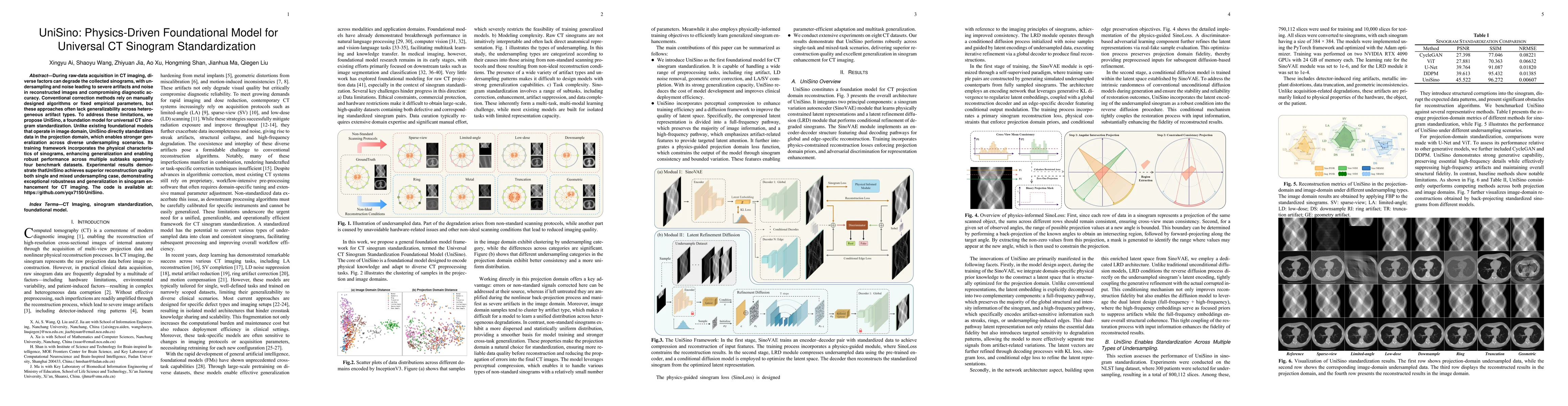During raw-data acquisition in CT imaging, diverse factors can degrade the collected sinograms, with undersampling and noise leading to severe artifacts and noise in reconstructed images and compromising diagnostic accuracy. Conventional correction methods rely on manually designed algorithms or fixed empirical parameters, but these approaches often lack generalizability across heterogeneous artifact types. To address these limitations, we propose UniSino, a foundation model for universal CT sinogram standardization. Unlike existing foundational models that operate in image domain, UniSino directly standardizes data in the projection domain, which enables stronger generalization across diverse undersampling scenarios. Its training framework incorporates the physical characteristics of sinograms, enhancing generalization and enabling robust performance across multiple subtasks spanning four benchmark datasets. Experimental results demonstrate thatUniSino achieves superior reconstruction quality both single and mixed undersampling case, demonstrating exceptional robustness and generalization in sinogram enhancement for CT imaging. The code is available at: https://github.com/yqx7150/UniSino.