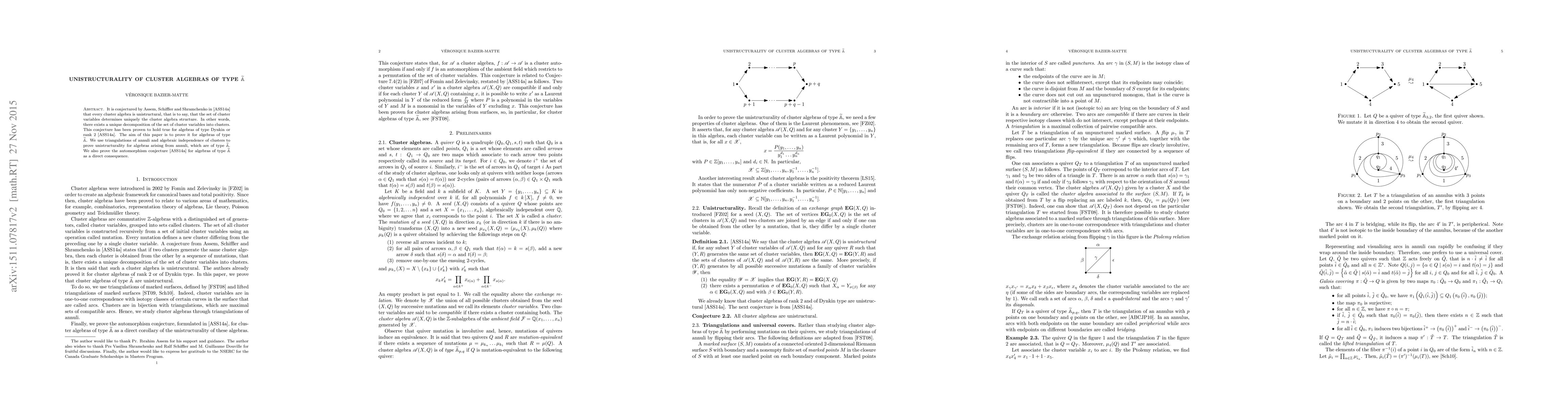 It is conjectured by Ibrahim Assem, Ralf Schiffler and Vasilisa Shramchenko in "Cluster Automorphisms and Compatibility of Cluster Variables" that every cluster algebra is unistructural, that is to say, that the set of cluster variables determines uniquely the cluster algebra structure. In other words, there exists a unique decomposition of the set of cluster variables into clusters. This conjecture has been proven to hold true for algebras of type Dynkin or rank 2 by Assem, Schiffler and Shramchenko. The aim of this paper is to prove it for algebras of type ${\widetilde{\mathbb{A}}}$. We use triangulations of annuli and algebraic independence of clusters to prove unistructurality for algebras arising from annuli, which are of type ${\widetilde{\mathbb{A}}}$. We also prove the automorphism conjecture from Assem, Schiffler and Shramchenko for algebras of type ${\widetilde{\mathbb{A}}}$ as a direct consequence.