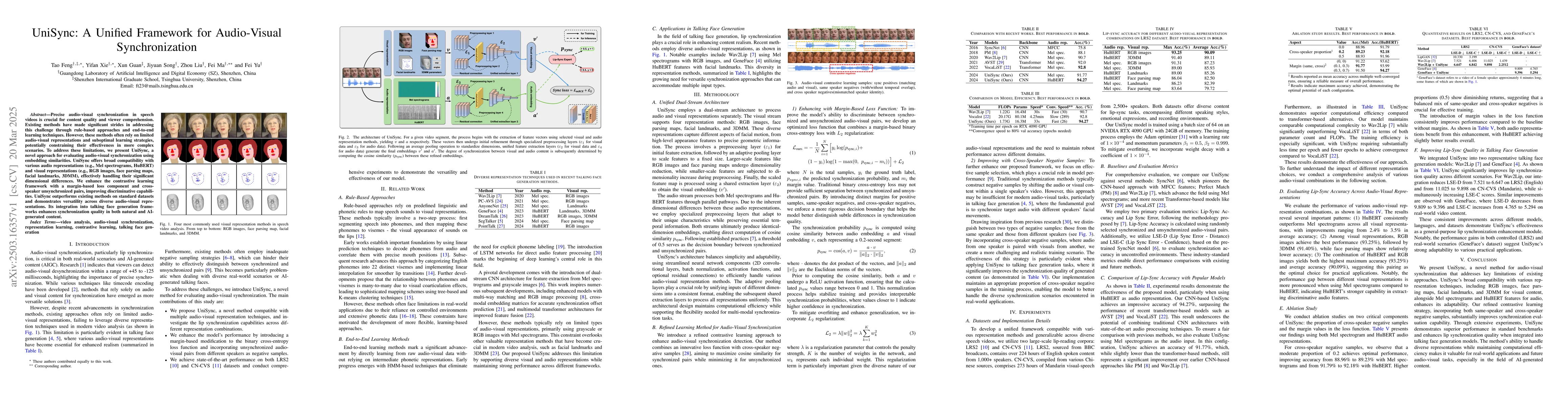 This research presents a novel, unified framework for audio-visual synchronization that addresses limitations of existing approaches. Its broad compatibility with various representation techniques enhances adaptability, and the refined contrastive learning strategy significantly improves synchronization evaluation capability.